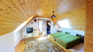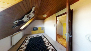 A nappaliból nyílik szintén egy-egy hálószoba a hozzátartozó saját fürdőszobával. Az egyik hálószobát egy nyugati fekvésű erkély egészíti ki. Mindegyik fürdőszobának saját villanybojlere van. A házban még egy lakórész található. Ez egy földszint+tetőtéri lakrész, külön bejárattal. Ezen lakórészből nyílik még egy tetőtéri nyári szoba, amely a maga 20 m2-ével igazán nagyszerű játszó szoba, gyerek kuckó vagy tároló tud lenni.