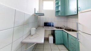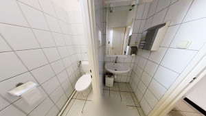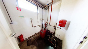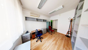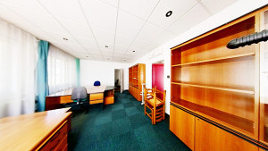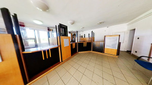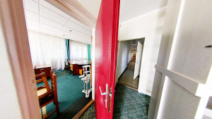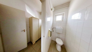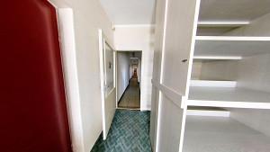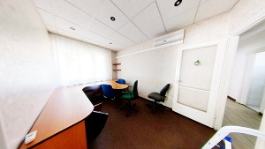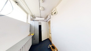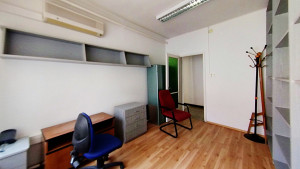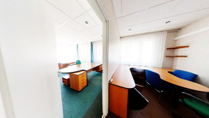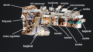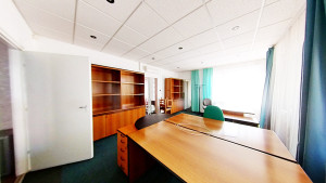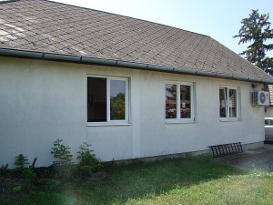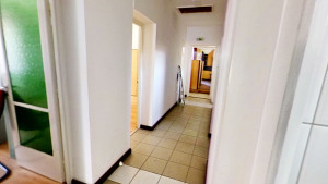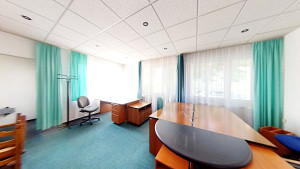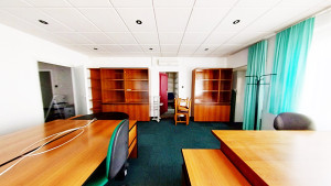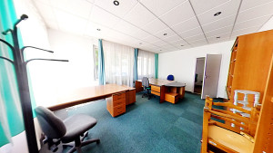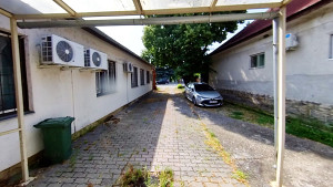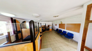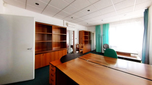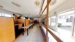 A bejárattól jobbra, hátul nyílik a közlekedő folyosó, amelyről a további helyiségek nyílnak. Balra a WC-kézmosó, vele szemben egy tágas szoba található. Tovább haladva A WC mellett a kazánház, mellette egy kis konyha, velük szemben szintén egy MÉRETES SZOBA helyezkedik el. A konyha mellett az egykori szerverszoba, mellette szintén egy WC-kézmosó van. Velük szemben egy másik szoba, melyből egy VALÓBAN TÁGAS, NAGY SZOBÁBA léphetünk be. Ebből a szobából nyílik az épület másik bejárata. A folyosó végén egy szintén kényelmesen tágas méretű szoba található, mely egy ajtóval kapcsolódik a már említett, külső bejárattal is rendelkező nagy szobához.