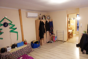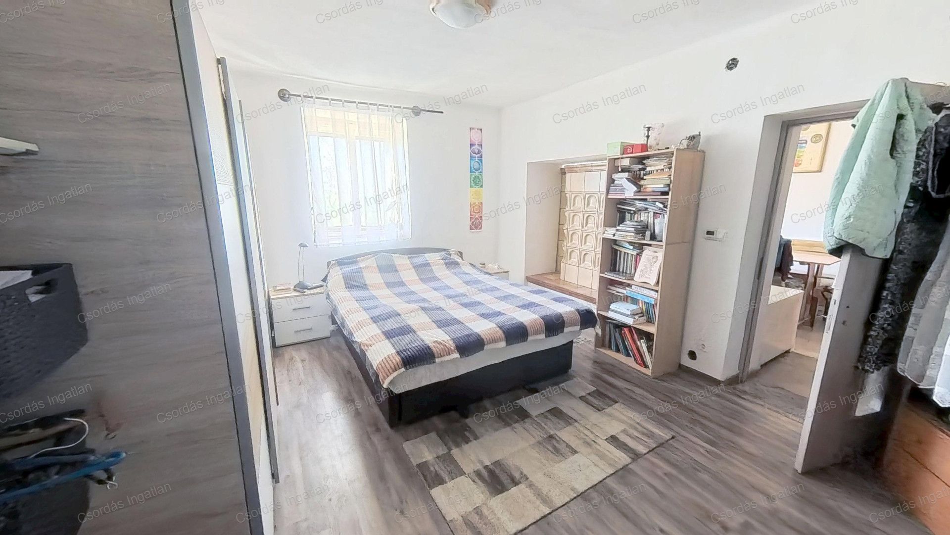 Az 1. lakórészben egy kis előtér után a TÁGAS KONYHA fogad minket. Innen nyílik a bejárattal szemben a zuhanyzós fürdőszoba. Balra a nappali-étkező található. Ebből nyílik jobbra és balra egy-egy valóban KÉNYELMESEN TÁGAS, JÓL BÚTOROZHATÓ, VILÁGOS SZOBA. A fűtést ELEKTROMOS PADLÓFŰTÉS biztosítja vagy választhatjuk tetszés szerint a nappaliban a pár éve egyedileg, igényesen ideépített, GYÖNYÖRŰ CSERÉPKÁLYHÁT is. A szobákban laminált lap, a többi helyiségben járólap a padlóburkolat. A padlófűtést helyiségenként szabályozhatjuk.