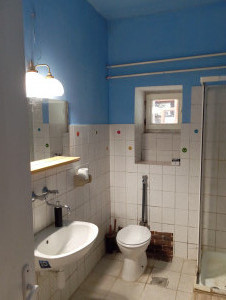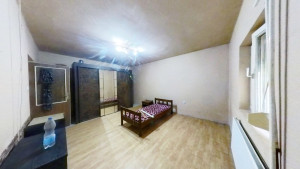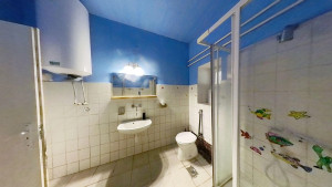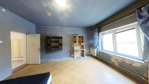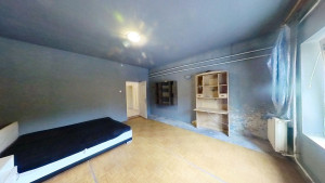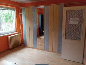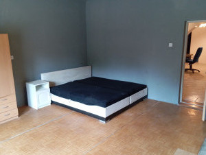 A szobával szemben a szintén nagy nappali- étkező részbe érkezünk, melyet egy boltíves nyitott átjáró választ ketté. Balra a másik nagy méretű, KIVÁLÓAN BÚTOROZHATÓ SZOBA van. A nappali-étkező részből egy kis közlekedőn keresztül érhető el a harmadik, tényleg tekintélyes méretű szoba. A közlekedőben mennyezetig érő BEÉPÍTETT SZEKRÉNY segít a tárolásban. A közlekedő közepén nyílik a fürdőszoba.