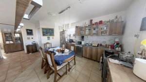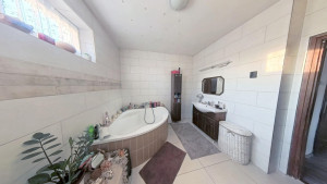 A 30 éve téglából épült ház két teljes értékű, szintenként 75 m2 lakószinttel rendelkezik. A földszintre KÉT KÜLÖN BEJÁRATON keresztül juthatunk be. A felső szintre belső lépcső vezet fel az étkezőből. A ház külső NYÍLÁSZÁRÓIT HŐSZIGETELT MŰANYAGRA cserélték, melyeket redőnnyel és szúnyoghálóval is ellátták. A földszinten PADLÓFŰTÉST építettek be, melyet radiátorokkal is kiegészítettek. A felső szinten csak radiátoros fűtés van. A fűtéshez GÁZKAZÁN és VEGYES TÜZELÉSŰ KAZÁN egyaránt rendelkezésre áll. A MELEG VIZET a tetőre beépített NAPKOLLEKTOROK állítják elő. A rendszer úgy lett kialakítva, hogy a napkollektoros rendszer a fűtésre is rásegítsen, ám ezt a kiépítést nem fejezték be, de minden rendelkezésre áll (TOVÁBBI NAPKOLLEKTOR PANELEK, PUFFER TARTÁLY). A házra jellemző a RENDKÍVÜL TÁGAS, VILÁGOS helyiségek.