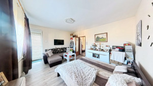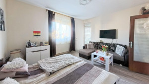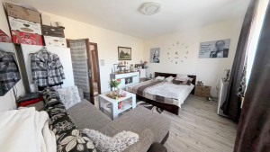 A másik bejárat a kazánház mellett nyílik. Egy kis előtérből szemben egy WC, balra pedig közvetlenül az egyik szobába érkezünk. Ebből a szobából egy NAGY, TOLÓAJTÓS ERKÉLYAJTÓN keresztül közvetlenül léphetünk ki a 13 m2-es, DÉLI FEKVÉSŰ TERASZRA.