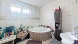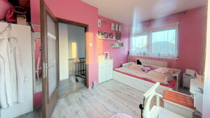 A felső szinten három, tényleg tágas szobát találunk, melyek jól elkülönülnek egymástól. Két SZOBÁBÓL AZ ERKÉLYRE van kijárat. Az emeleti FELÚJÍTOTT, NAGY SAROKKÁDDAL FELSZERELT FÜRDŐSZOBA valóban kényelmesen nagy, világos. Mellette a külön WC és a MOSÓKONYHA található. A felső szint mennyezete beton födém, így a tetőtér beépíthető.