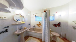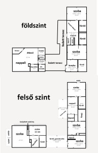 A nappaliból nyílik szintén egy-egy hálószoba a hozzátartozó saját fürdőszobával. Az egyik hálószobát egy nyugati fekvésű erkély egészíti ki. Mindegyik fürdőszobának saját villanybojlere van. A házban még egy lakórész található. Ez egy földszint+tetőtéri lakrész, külön bejárattal. Ezen lakórészből nyílik még egy tetőtéri nyári szoba, amely a maga 20 m2-ével igazán nagyszerű játszó szoba, gyerek kuckó vagy tároló tud lenni.