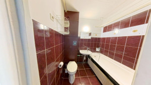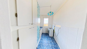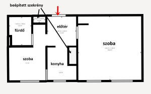 A bejárattal szemben a konyha található, melyben egy MENNYEZETIG ÉRŐ BEÉPÍTETT SZEKRÉNY segít a tárolásban. A bejárattól jobbra szintén van egy nagy beépített szekrény. Mellette helyezkedik el a fürdőszoba a WC-vel. A fürdő mellett a JÓL BÚTOROZHATÓ HÁLÓSZOBA lett kialakítva. Az ablakokat hőszigetelt műanyagra cserélték, melyeken redőny és szúnyogháló is van. A lépcsőházba tágas, új liftet szereltek be.