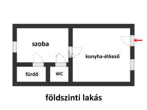Az ingatlan egy első emeleti 61 m2-es és egy földszinti 30 m2-es külön álló lakásból áll. A lakások KÜLÖN MÉRŐÓRÁKKAL, KÜLÖN GÁZKAZÁNNAL rendelkeznek. A földszinti lakás egy konyha-étkezőből, egy szobából áll, melyhez tartozik még egy külön WC és egy zuhanyzós fürdőszoba. A szobában egy hűtő-fűtő klíma is rendelkezésre áll. A lakás előtt közvetlenül egy 5 m2-es terasz van. A fűtés gázkazán radiátorokkal.